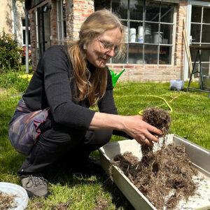 paho: Anke hat an den Sommerakademien „pappel witt“, „Landart 2.0“ und „Hanf und Flachs“ teilgenommen. Bei Letzteren erarbeitete sie open air Installationen mit Hanfkalk. 2023 experimentierte sie mit Petra Walter-Moll und Ute Fürstenberg zur Papierherstellung aus Nutzhanf. Im Moment arbeitet sie mit im Projekt „HEXE VON S.“.