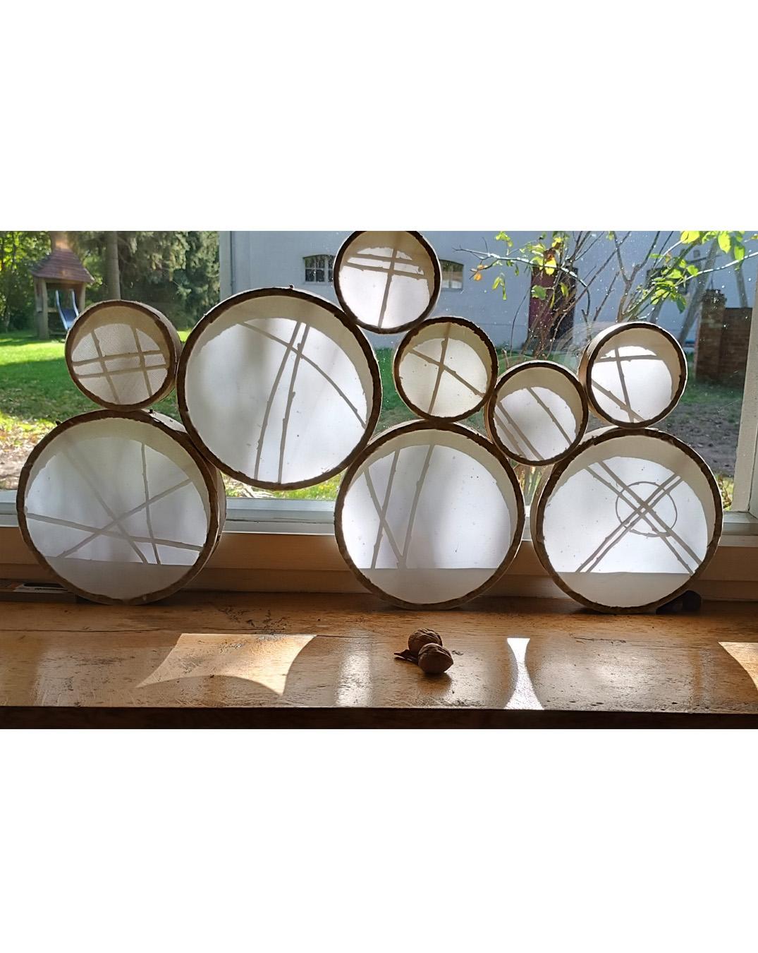 Martina Brömme arbeitete zunächst mit Weidenzweigen, widmete sich dann aber einer Komposition aus Pappringen und Transparentpapier. Jutta Dücker entwickelte eine Form aus kleinteiligen Flächen, die den Umriss der Kanzel nachzeichnete. Susanne Krell erarbeitete ein Modell für eine Arbeit, die Bezug zum Ort der Hexenverbrennungen nehmen und die Struktur von Feuer an der Kassettendecke abbilden soll. Katrin Mason Brown installierte einen papierenen Strahlenkranz und Lichtspot unter einem Leuchter und erzeugte so eine große, sich langsam drehende und überschneidende Schattenform an der Decke. Ellen Mäder-Gutz gestaltete für die Rosette über der Eingangstür eine Blüte aus transparentem Papier, deren Überlappungen Schattierungen bildeten. Doreen Stenzel experimentierte mit Federstrukturen, die sie auf verschiedene Flächen im Raum projizierte. Barbara Toepper-Fennel und Peter Fennel entwickelten ihre Ideen ausgehend von fotografischen Arbeiten, zum Beispiel für den Treppenbereich der Kirche. Martina Winterle experimentierte mit hohen schmalen Papierkegeln im Kirchenschiff. Bernd Schulz unterstützte die Teilnehmer:innen individuell bei der Entwicklung und Umsetzung ihrer Entwürfe. Nach Einbruch der Dunkelheit zeigte er mit Lichtkanone und Nebelmaschine, wie sich Formen aus Licht in den Hof und die Landschaft zeichnen lassen.